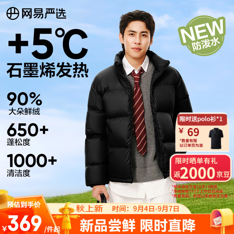 百亿补贴网易严选25新品90鸭绒超蓬羽绒服休闲面包服石墨烯保暖轻量抗菌防泼水 25秋冬立领-静谧黑 L