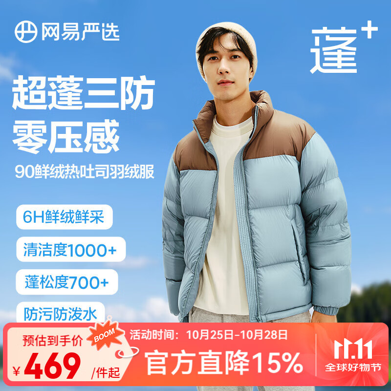 旗舰店网易严选【热吐司】24冬季90白鸭绒面包羽绒服加厚保暖超蓬 烨珊蓝-立领拼色 L