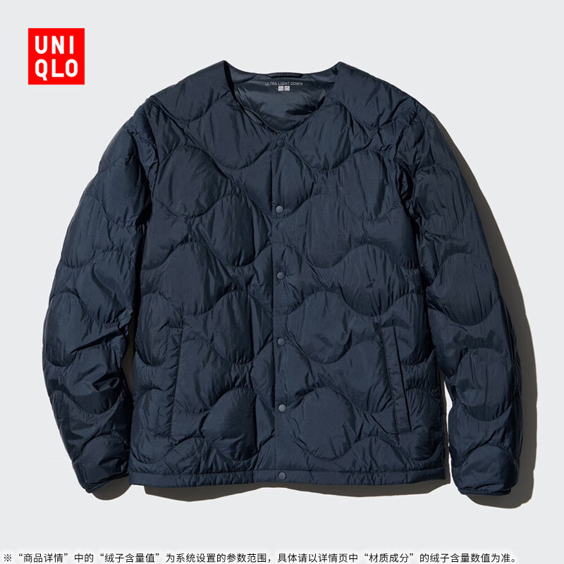 优衣库男装女装高级轻型羽绒便携式茄克/弧形压线外套夹克472798 69 藏青色 XL