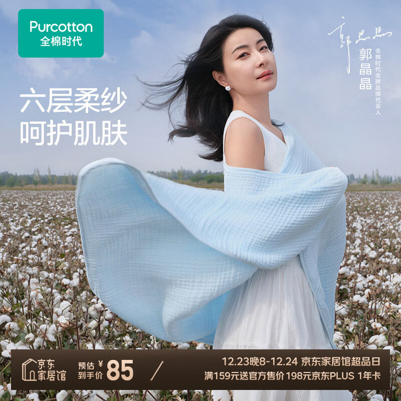 自营全棉时代浴巾纯棉速吸易干六层素色水洗纱布浴巾经典蓝 80cm×140cm