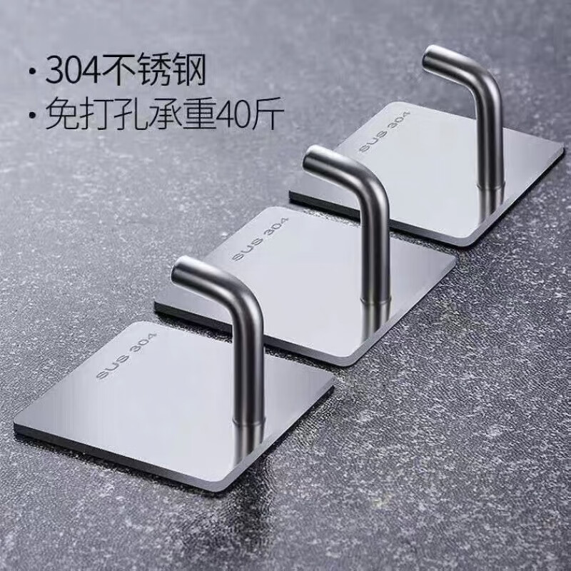 旗舰店不锈钢免打孔挂钩强力粘胶厨房墙壁承重壁挂粘钩衣无痕钉金属钩子 挂钩 10个