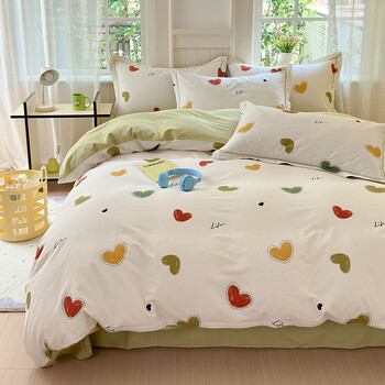 旗舰店兰芮(Lanrui)全棉磨毛四件套100%棉加厚保暖透气亲肤被套床单枕套套件 爱心日记 200*230cm四件套(1.5/1.8m床)