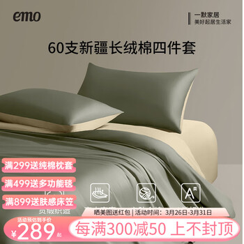 旗舰店一默四件套纯棉60支长绒棉贡缎100%A类床单枕套单双人家纺床上四件套 苔绿配沙金 被套200*230cm丨床单+枕套*2