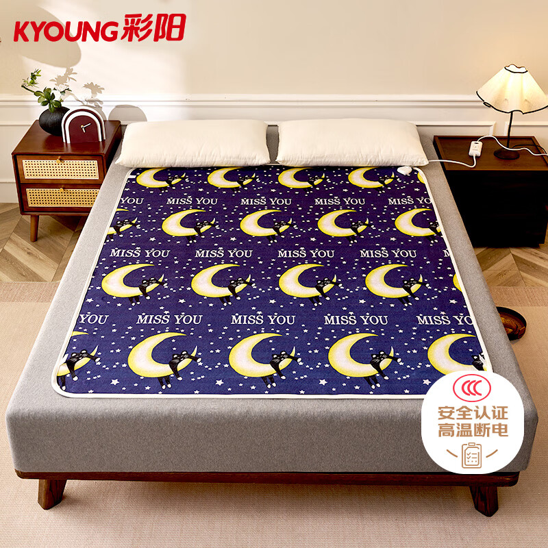 自营彩阳【线下同款 高温断电】双人单控印花无纺布电热毯电褥子1.6*1.3米