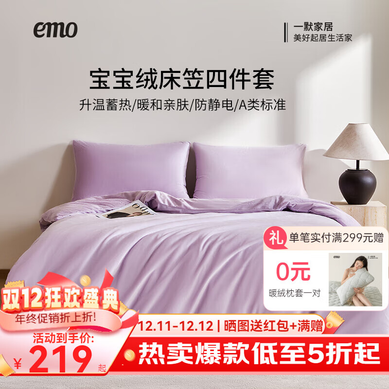 旗舰店一默宝宝绒四件套冬季保暖床上家居床笠四件套被套床笠枕套厚绒四件套 山间暮色 床笠款 (被套150*200cm) 床笠1.5*2m