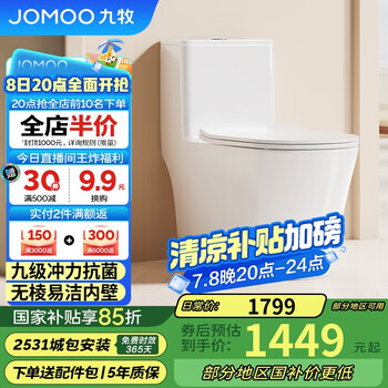 自营九牧(JOMOO)11383-2-1/31KA-1家用虹吸抗菌双漩坐便器大冲力节水马桶305坑距
