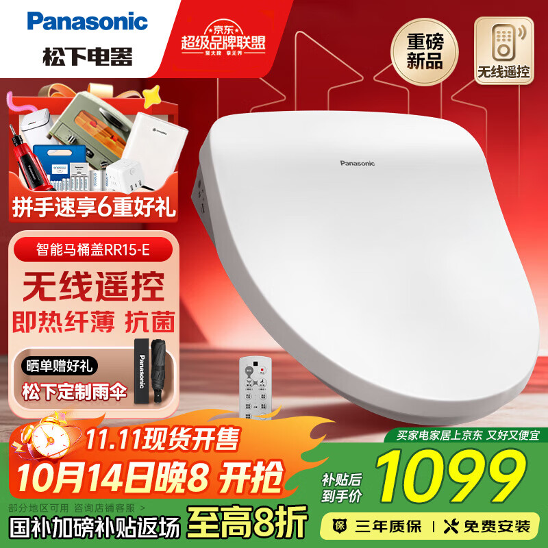 自营松下(Panasonic)智能马桶盖 马桶坐便器盖板电动加热冲洗洁身器 无线遥控 RR15E