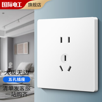 旗舰店国际电工 86型开关插座 白色家用开关 86型墙壁暗装五孔插座面板 五孔插座