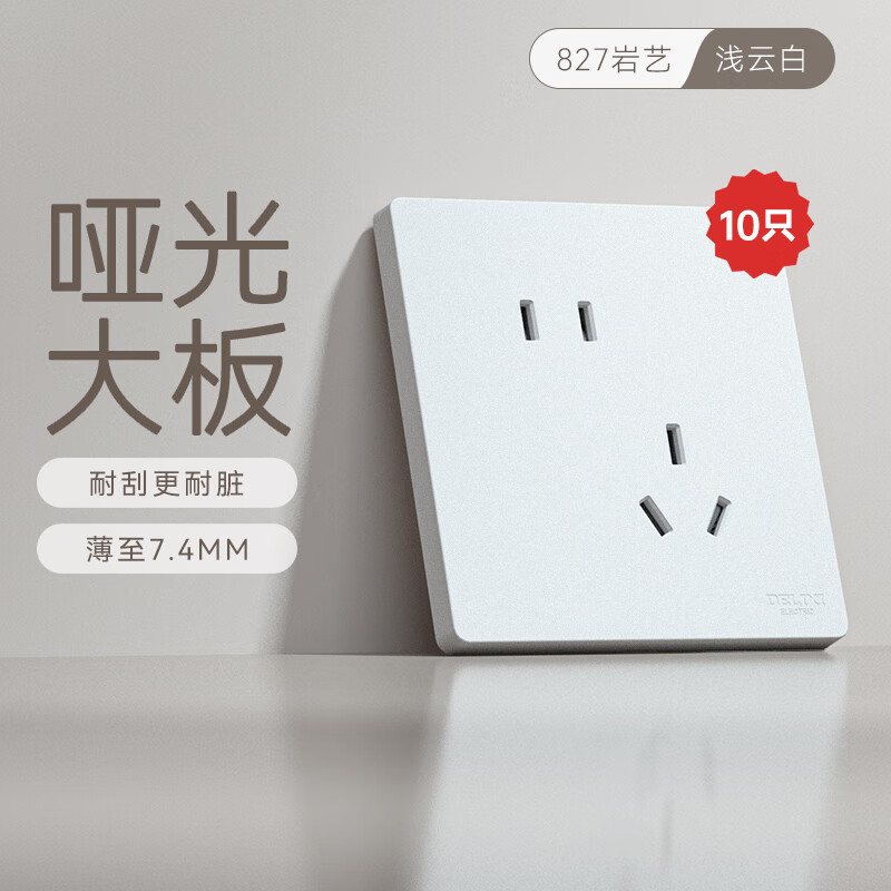 旗舰店德力西(DELIXI)开关插座面板哑光奶油风磨砂大板暗装家用墙壁usb插座827浅云白 斜五孔插座10只装