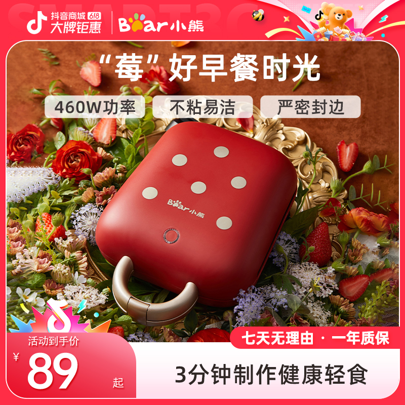 旗舰店小熊三明治机草莓早餐机家用多功能电饼铛早餐神器烤面包机网红款