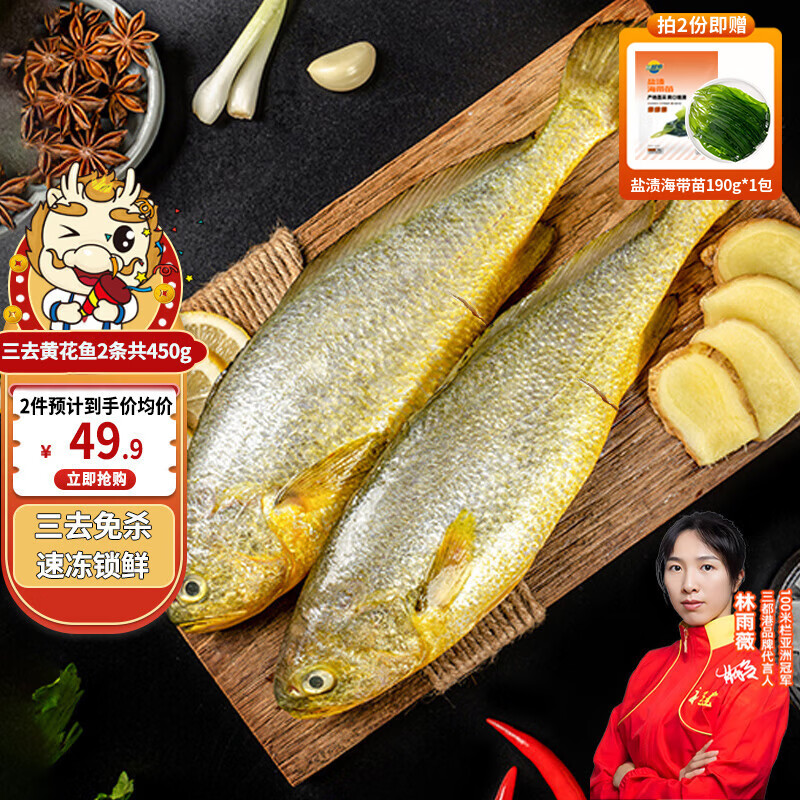 旗舰店三都港三去黄花鱼宁德正宗原产地大黄鱼新鲜冷冻海鲜水产免杀烹饪食材鱼 三去黄花鱼2条共450g