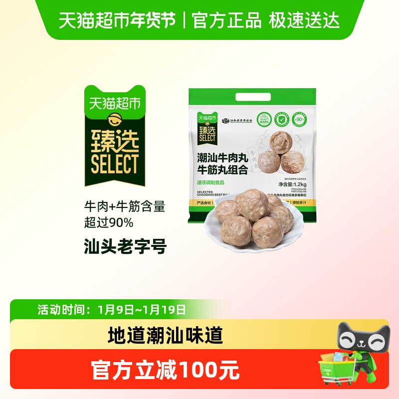 【臻选】潮汕牛肉丸牛筋丸组合90%牛肉含量汕头原产地1200g/内6包