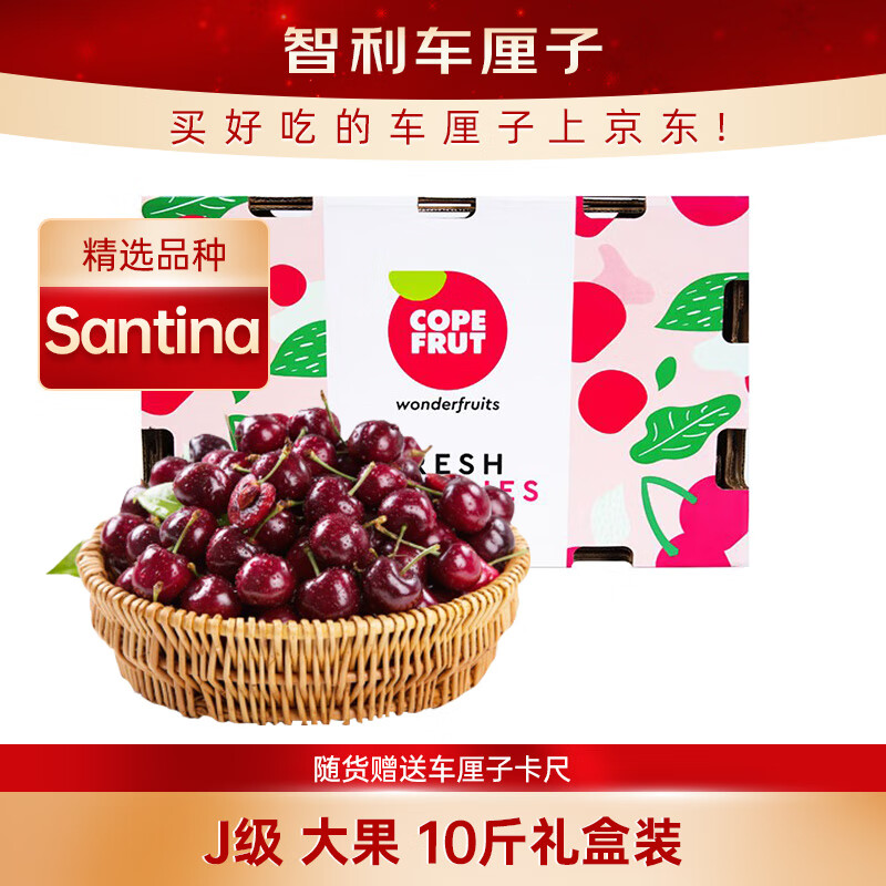 自营京鲜生 智利Santina车厘子 3J级10斤礼盒装 果径约30-32mm 年货水果礼盒