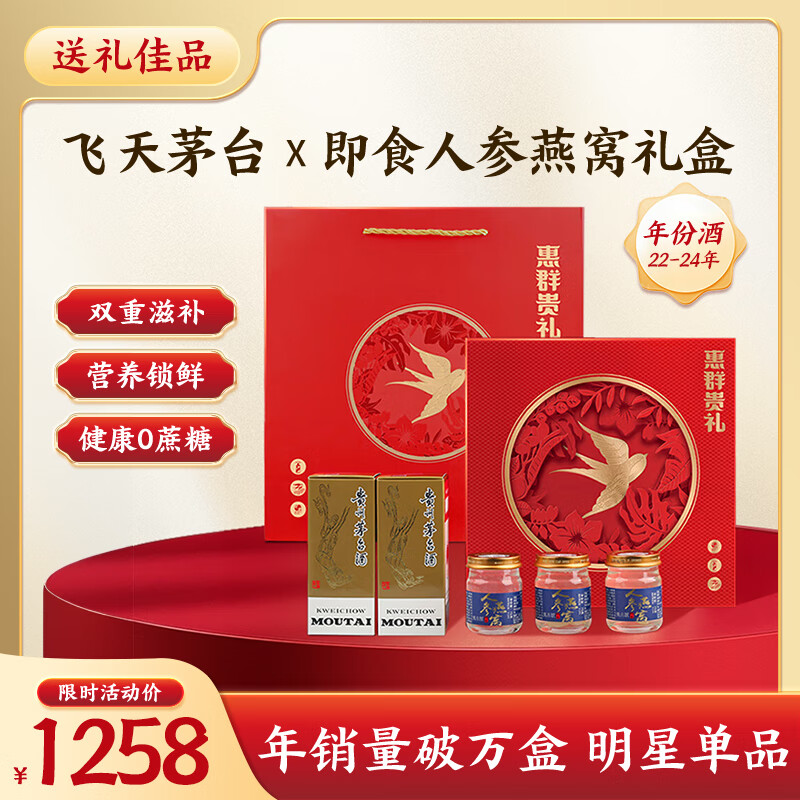 茅台飞天 酱香型白酒 200mlx2 人参燕窝礼盒