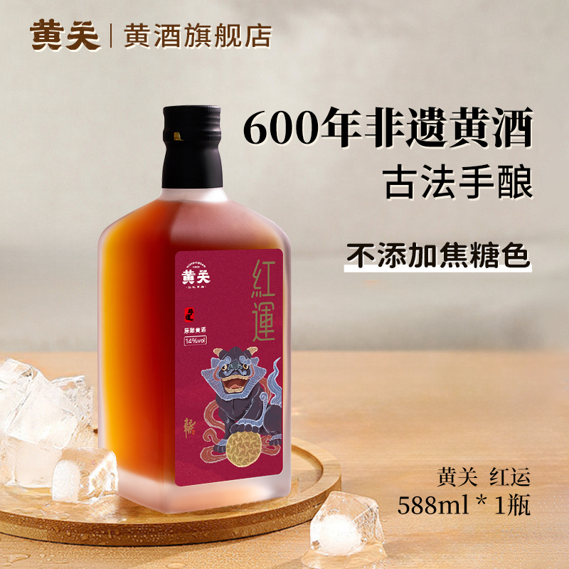 旗舰店黄关黄酒红运5年陈非遗传统古法手工酿造无焦糖色糯米酒14度588ml