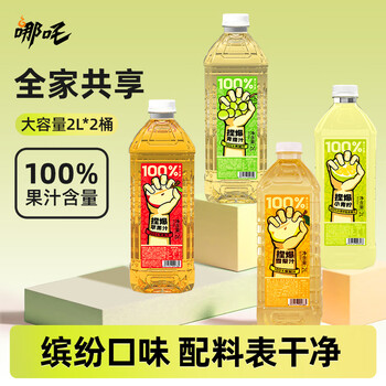 旗舰店哪吒捏爆100%苹果青提雪梨甜橙0添加果汁早餐下午茶饮料富含维C 青柠汁2L*1瓶+苹果汁2L*1瓶