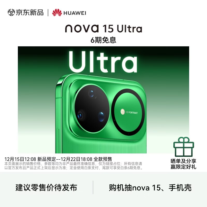自营华为 nova 15 Ultra 新品预定 12月22日14:30 nova 15系列及全场景新品发布会敬请期待
