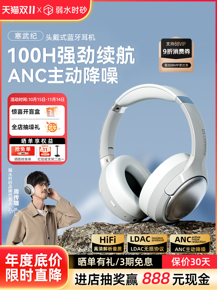 百亿补贴弱水时砂寒武纪头戴式蓝牙耳机主动降噪无线耳机游戏电竞2025新款