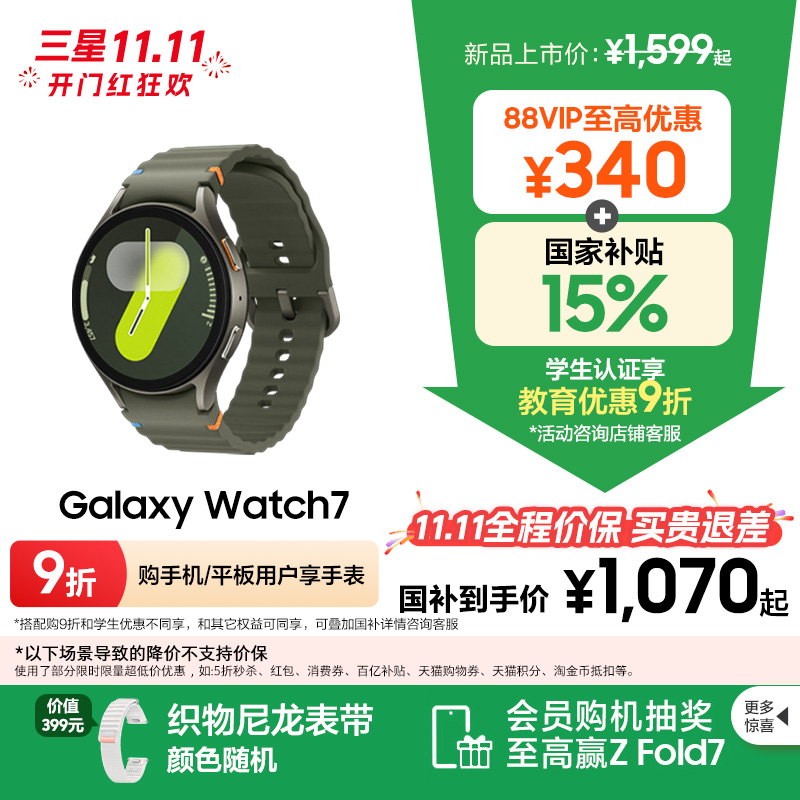 百亿补贴【国家补贴至高15%】三星/Samsung Galaxy Watch7 蓝牙/LTE运动AI睡眠监测政府补贴智能手表