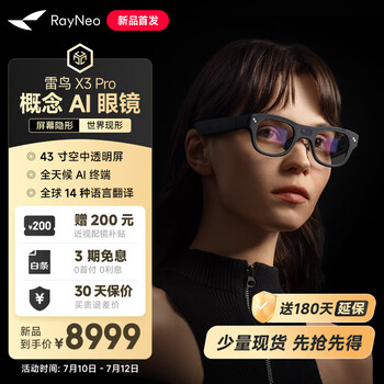自营雷鸟【雷鸟超级新品】RayNeo X3 Pro 概念AI眼镜 真无线双目全彩显示 光波导 交互眼镜