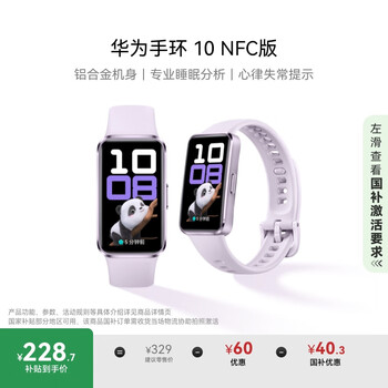 自营华为(HUAWEI)手环10 NFC版 流光紫 智能手环专业睡眠分析情绪健康铝合金机身心率监测运动手环支持NFC手环9升级