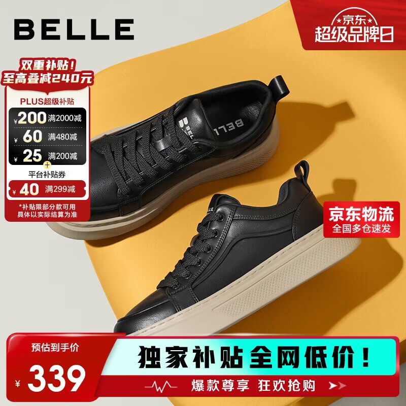 自营百丽男鞋厚底增高复古小白鞋25秋新款运动休闲板鞋A2259CM5 黑单里 42