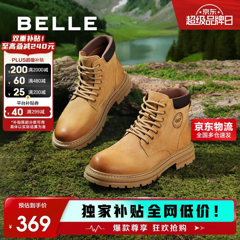 自营百丽趣露营野地先锋户外男厚底大黄靴子加绒保暖A1763DD4 土黄单里 44