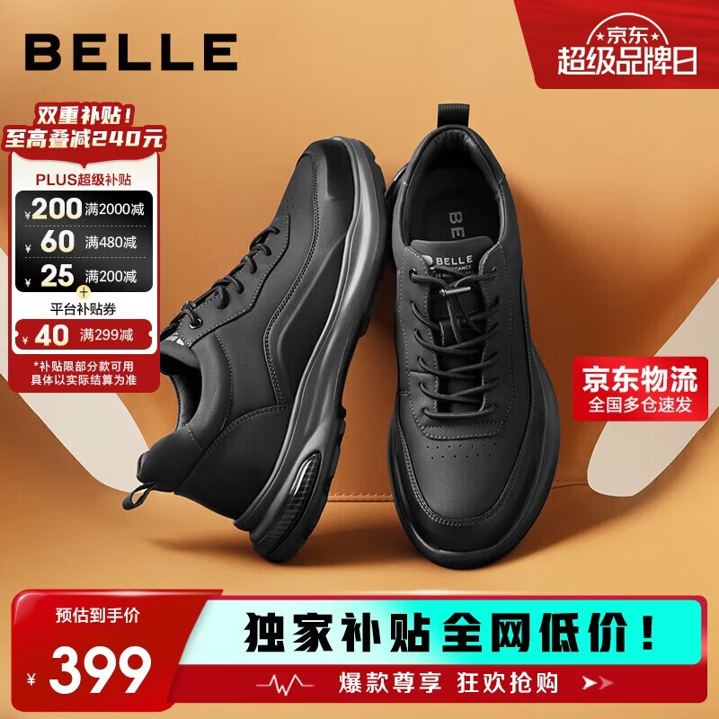 自营百丽厚底增高健步鞋男25秋户外休闲运动鞋A2152CM5 碳墨黑 41