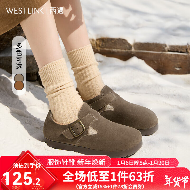 旗舰店西遇全包勃肯鞋女加绒2025冬新款软底棉鞋保暖一脚蹬毛毛鞋 卡色 (预售20天) 35 (225mm)