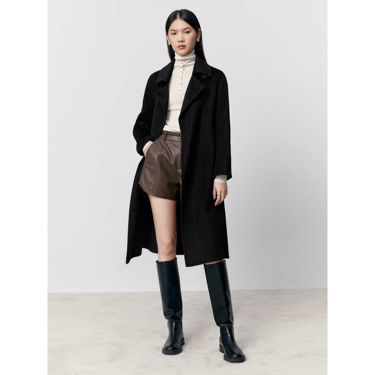 【驼绒水波纹大衣】大师甄绒系列浴袍式双面呢大衣外套女