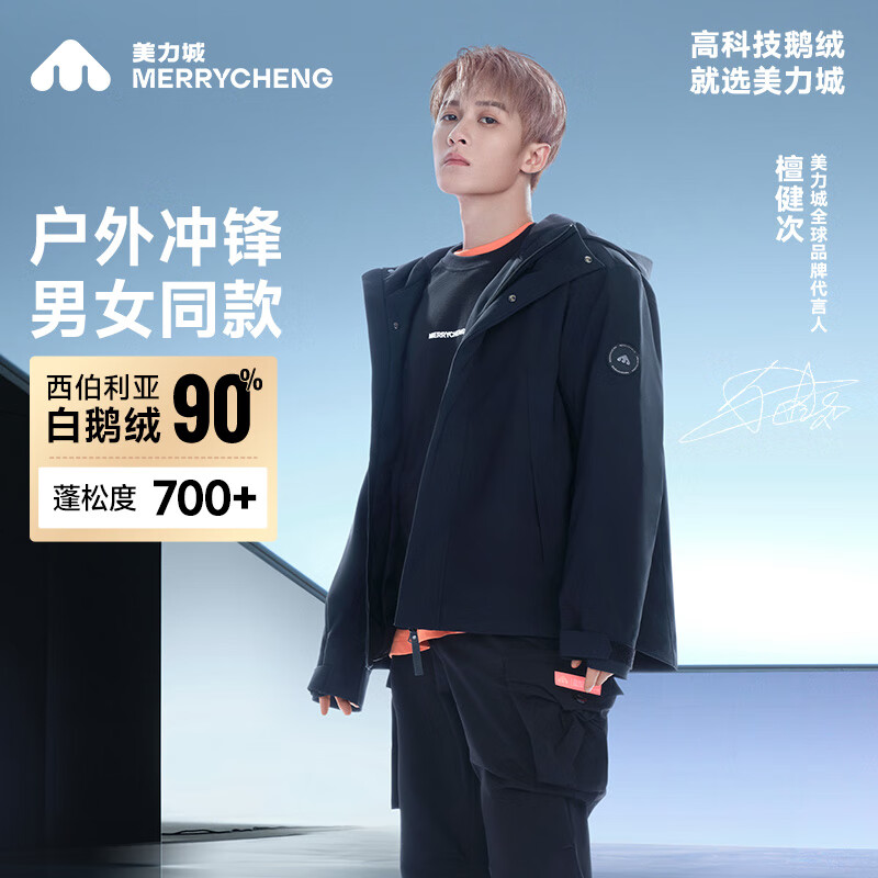 旗舰店美力城檀健次同款 钛金4.0羽绒服短款女装新款90鹅绒户外工装男外套 黑色 L