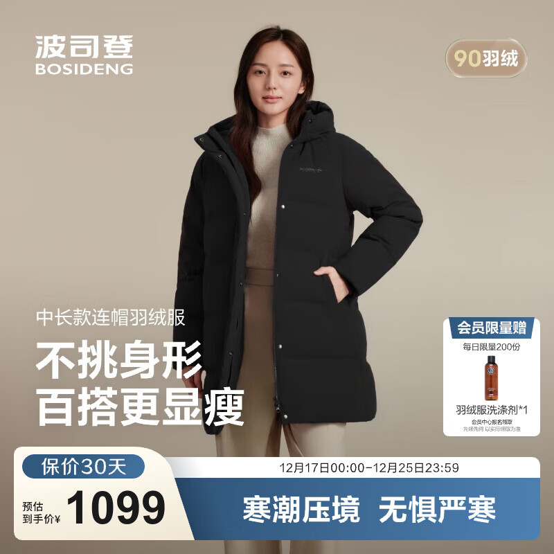 旗舰店波司登(BOSIDENG)25新款冬季羽绒服女款连帽90绒宽松送长辈骐骥红外套B250245124 黑色8056 3XL 185/104A 体重约150-170斤