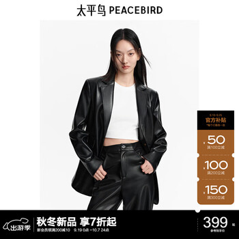 自营太平鸟女装西装外套秋廓形直筒皮衣设计感时尚通勤潮流 黑色 M