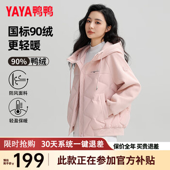 旗舰店鸭鸭(YAYA)【90+系列】轻薄羽绒服女短款2024冬季新款时尚连帽保暖外套KL 粉色 M (160)