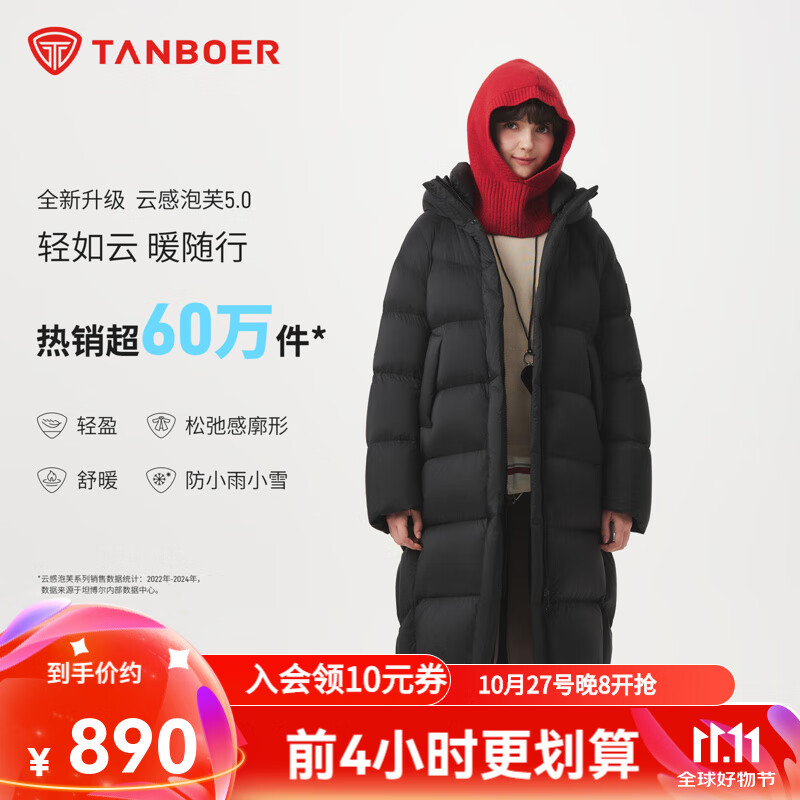 旗舰店坦博尔2025冬季新云感泡芙羽绒服女长款款加厚保暖连帽外套TB5530838D 黑色 XS (155)