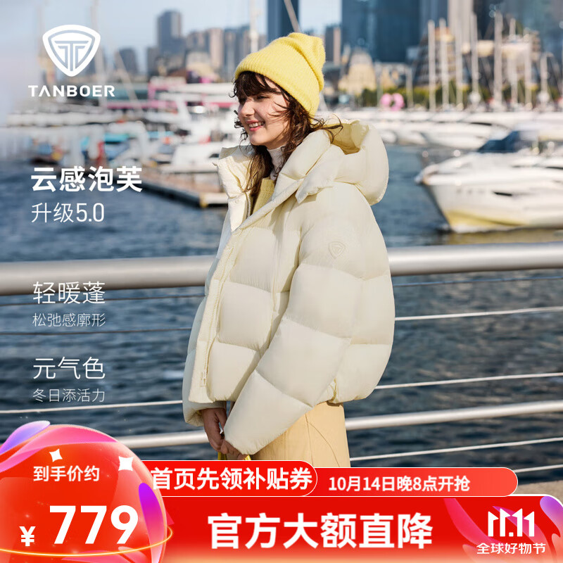 旗舰店坦博尔【周也同款】泡芙短款羽绒服女可脱卸帽冬季保暖外套TB5530520D 奶芙米 XS (155)