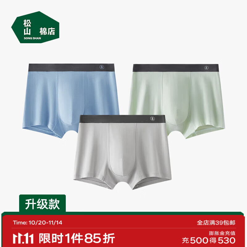 旗舰店松山棉店【蚕柔】莫代尔男士内裤柔软亲肤清爽透气四角平角裤男内 【升级款】蓝色+果绿+浅灰 3条 2XL (推荐160-175斤)