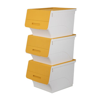 旗舰店茶花(CHAHUA)收纳箱塑料收纳盒儿童玩具整理箱储物箱斜口前开叠加侧开收纳柜 【奶黄色】34升3个装 大号34L【45.5*38*31cm】