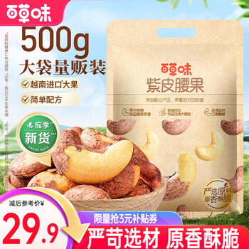 旗舰店百草味紫皮腰果 大颗粒罐装坚果越南带衣腰果仁 【大袋畅享】盐焗味500g