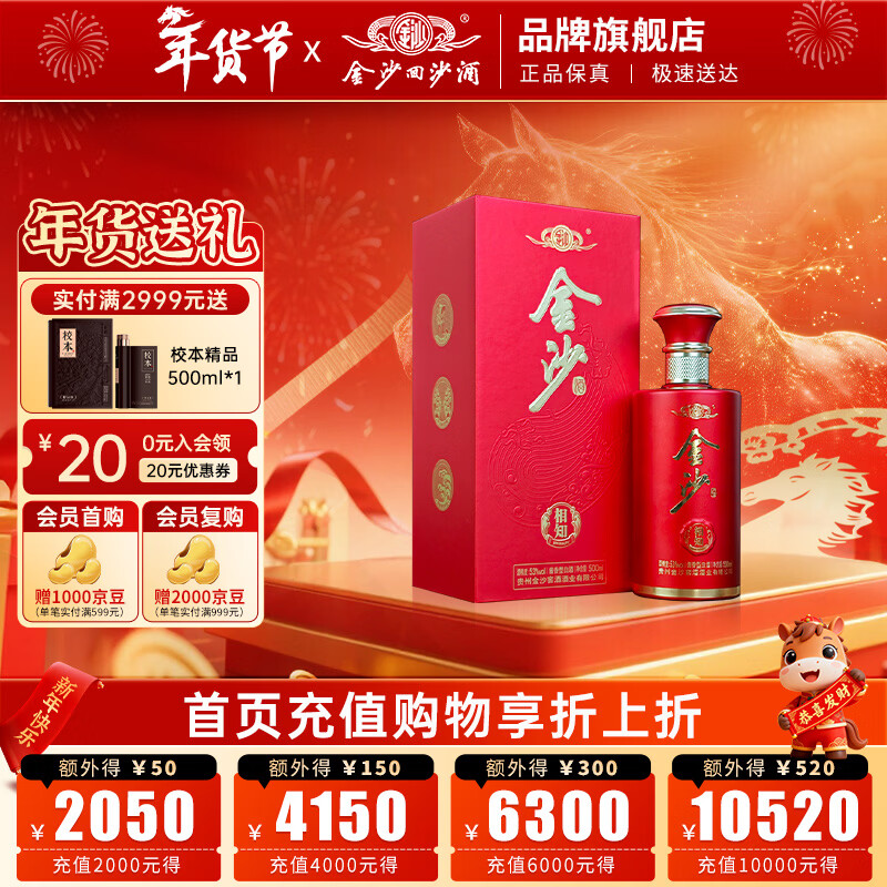 旗舰店金沙回沙酒【年货送礼】53度酱香型白酒 贵州酱酒纯粮坤沙 自饮宴请 53%vol 500mL 1瓶 (相知单瓶)