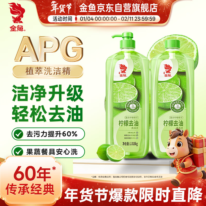 自营金鱼柠檬APG洗洁精1.018kg*2瓶 A类果蔬奶瓶洗洁剂洗碗液洗涤灵去油