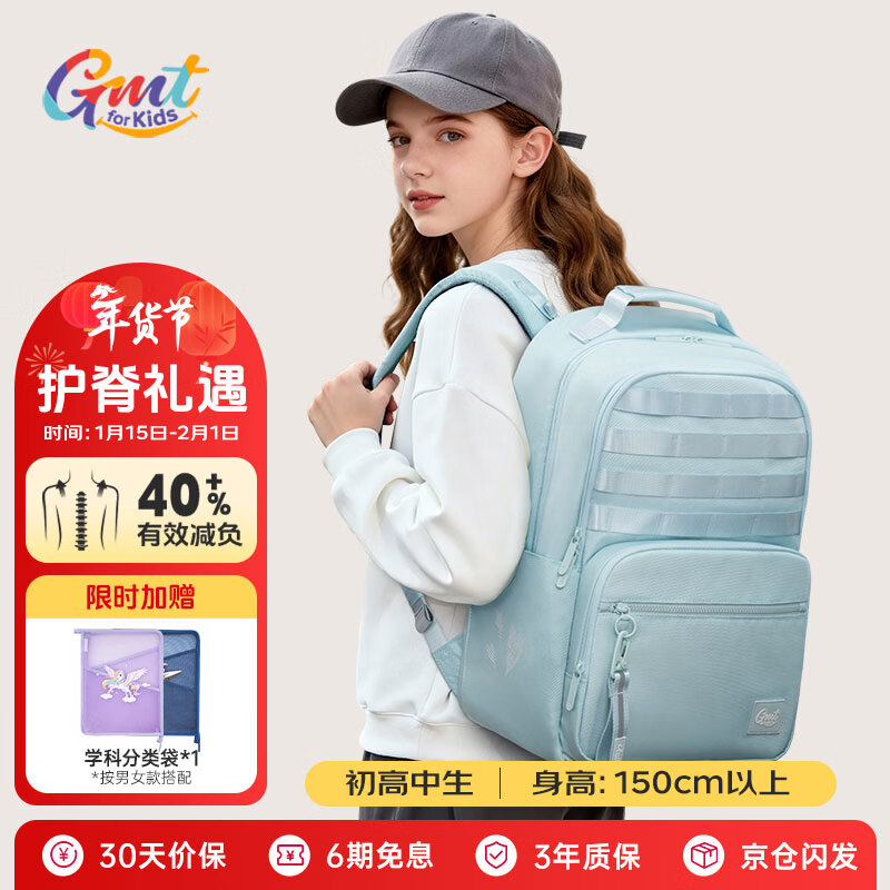 自营Gmt for kids初高中生书包小学生护脊减负双肩包5-12年级轻便5-6年级女绿Magic