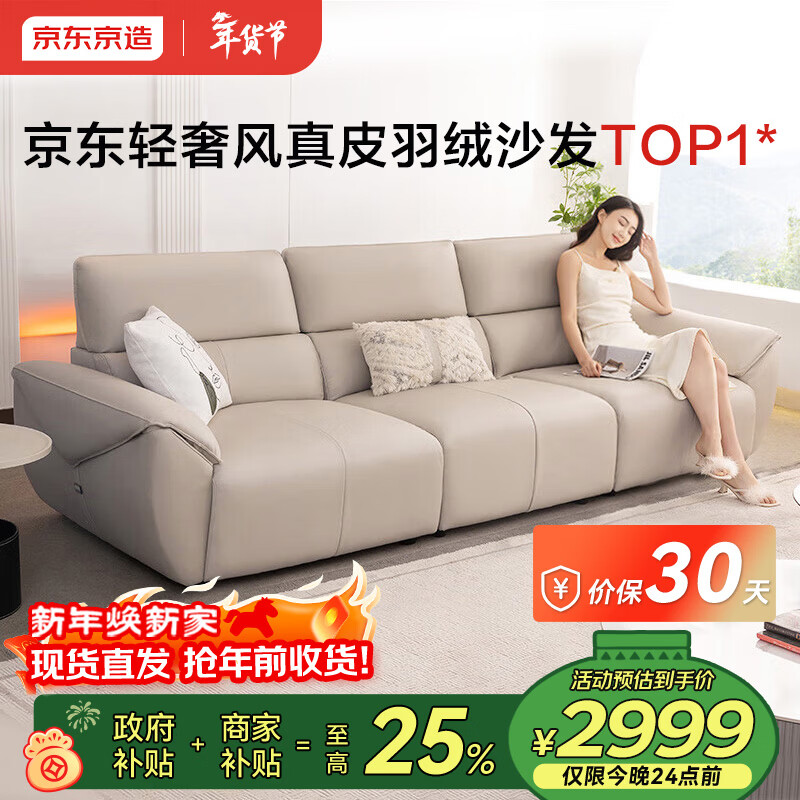自营京东京造家居信封真皮直排沙发客厅小户型头层牛皮钢琴键2.7m白