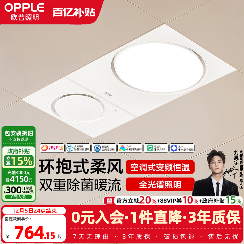 旗舰店欧普照明抱抱暖环出风除菌浴霸灯浴室排气扇一体集成吊顶卫生间