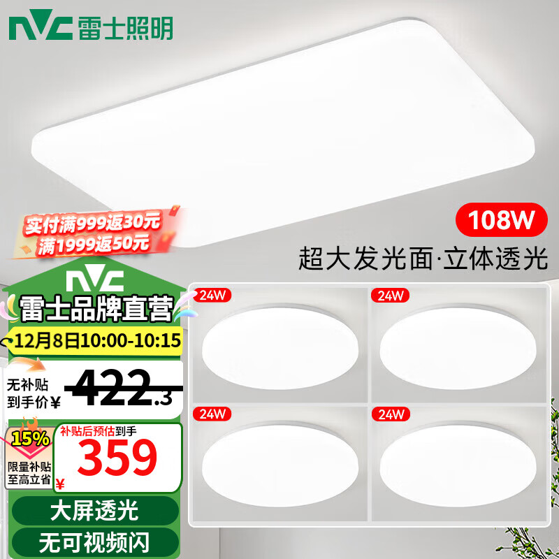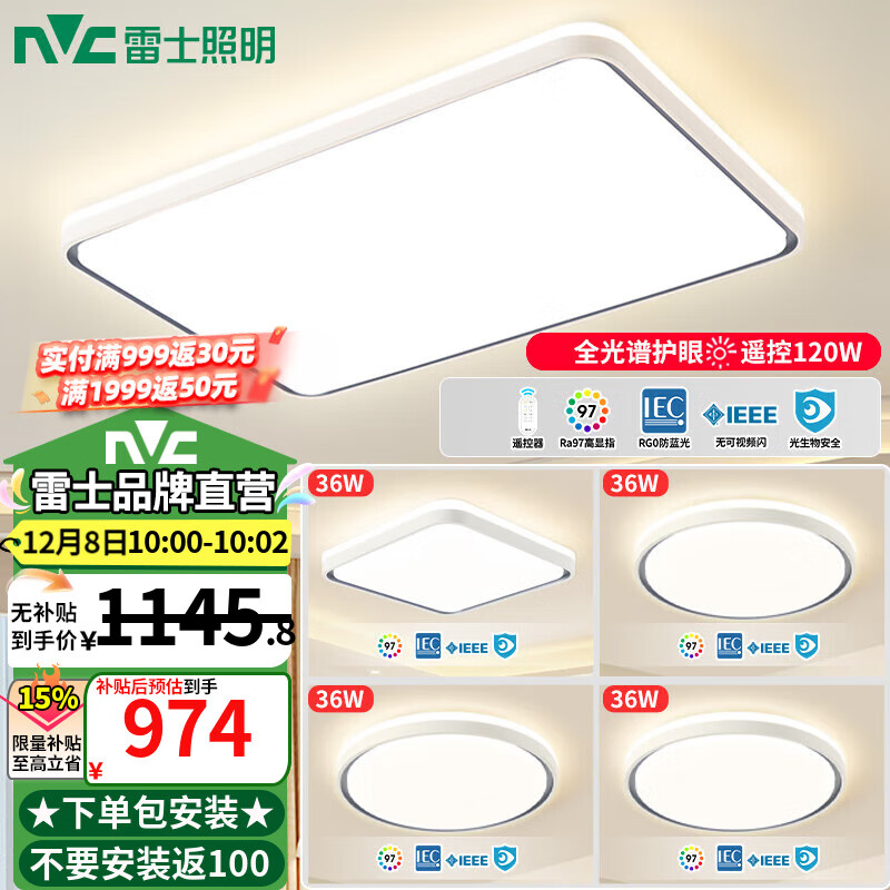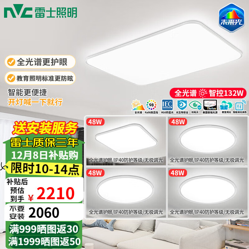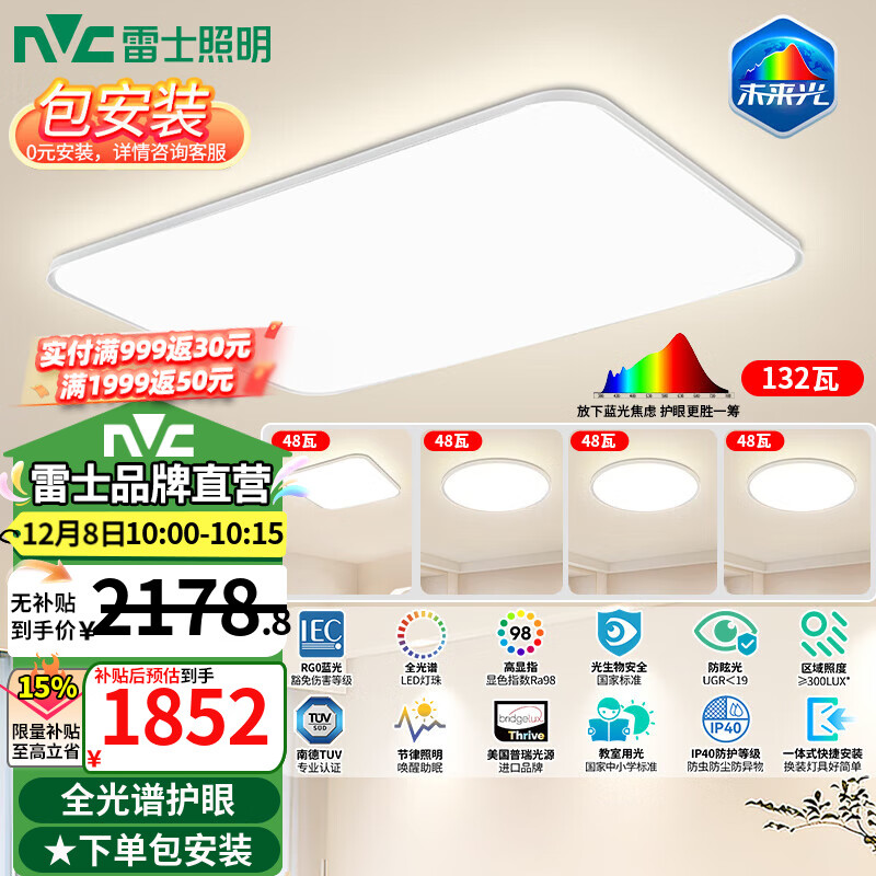 旗舰店雷士(NVC)LED全光谱护眼智能吸顶客餐厅卧室房间灯具2025流行新款全屋套餐 力荐!全光谱02-四室一厅