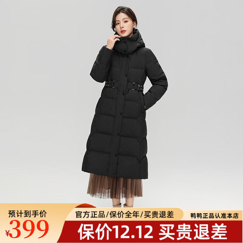 旗舰店鸭鸭(YAYA)羽绒服女冬季2025年新款中长款加厚女款中长款外套XB 黑色 S