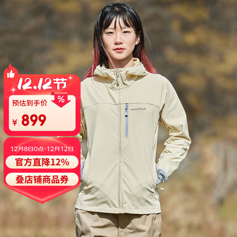 旗舰店mont·bell抓绒衣男款秋冬单面拉绒保暖舒适弹力连帽开衫外套 1106733 NV海军蓝 M