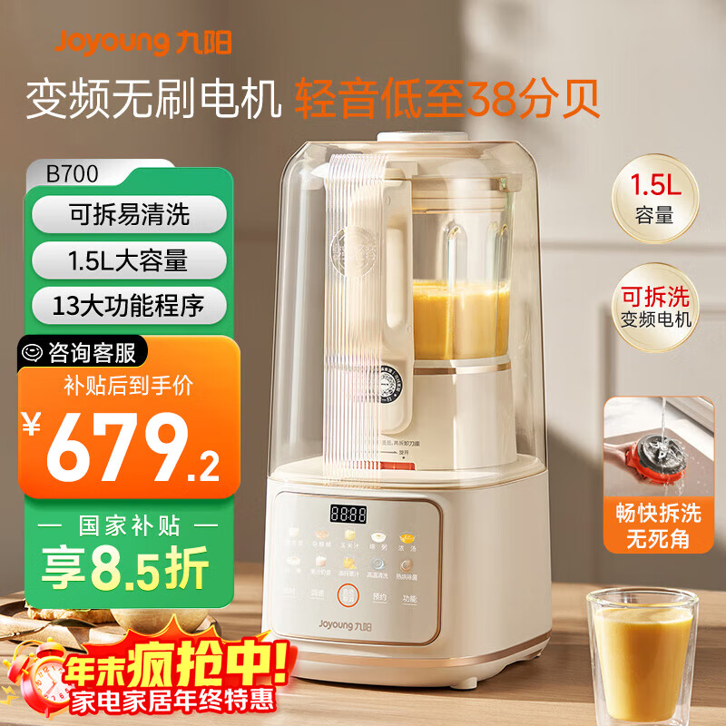 自营九阳轻音舱破壁机1.5L家用全自动豆浆机降噪榨汁2-4人五谷杂粮料理辅食可拆洗B700【漫生活】政府补贴