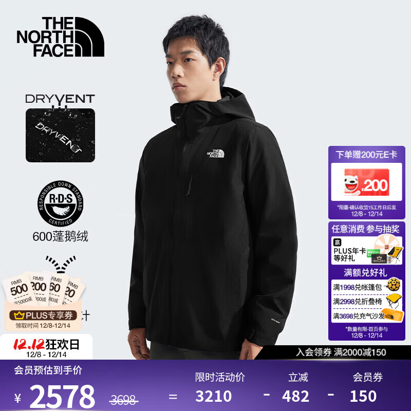 旗舰店北面(The North Face)三合一冲锋衣男North Table防水透汽600蓬羽绒25秋冬上新|83SL 4HF/黑色 XL /180