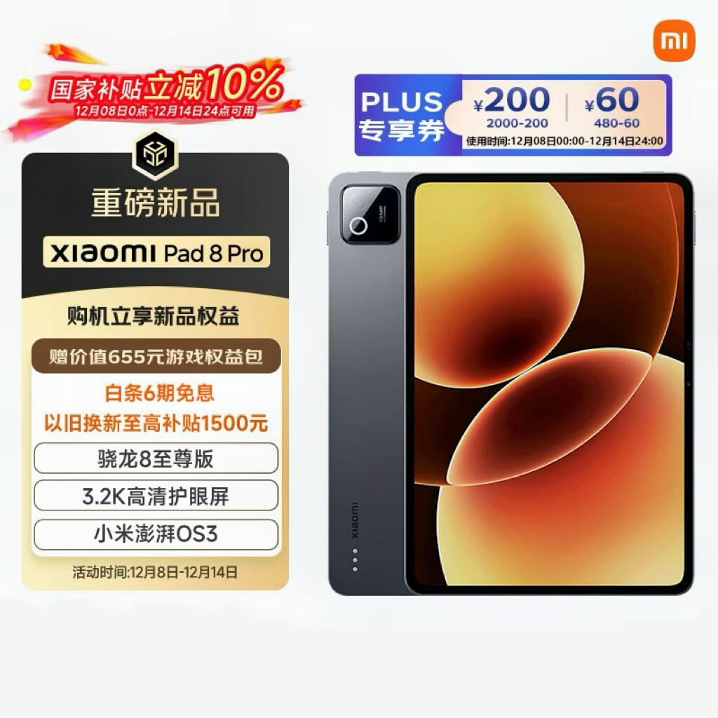 自营小米(MI) 小米平板8 Pro 11.2英寸 3.2K 超清屏 骁龙8 至尊 澎湃OS3 8+256G 黑色